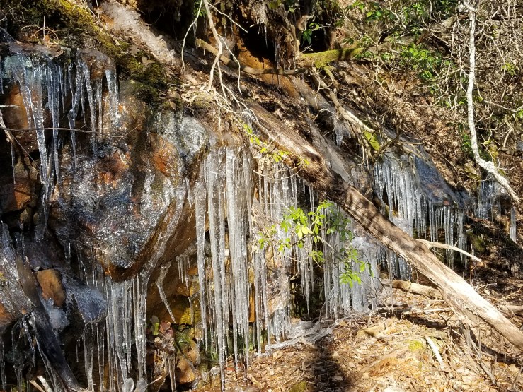 I accidentally deleted Day 6 last night, so I am redoing it here. Left Low Gap Shelter last night and headed to Blue Mountain Shelter. The hike to Blue Mountain was fairly easy. It was still cold, so the water seeps coming out of the m ontain froze into long stretches of icecicles glimmering in the sun. The last stretch of the hike was pretty rocky, so I had to plan each step and take it slow. I have yet to stay in a shelter. Those who have, had mice running over them, falling on their faces and more. I plan on staying out of them if I can help it. I might consider stay in one if severe weather is in the area. The shelters have an open front. The shelters look to be in good shape in Georgia. There was good cell phone reception on Blue Mountain, so I was able to chat/text some friends.