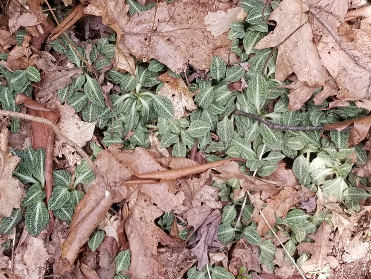 Saw many nonblooming clusters of Rattlesnake Orchids.