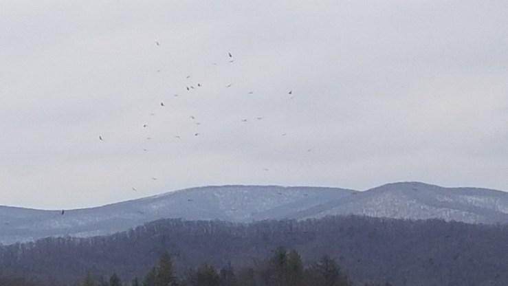 I was not going to post any pictures today, but as I was drafting this blog post about 50 or more buzzards were circling in the sky. This picture likely does not convey how cool it was.
