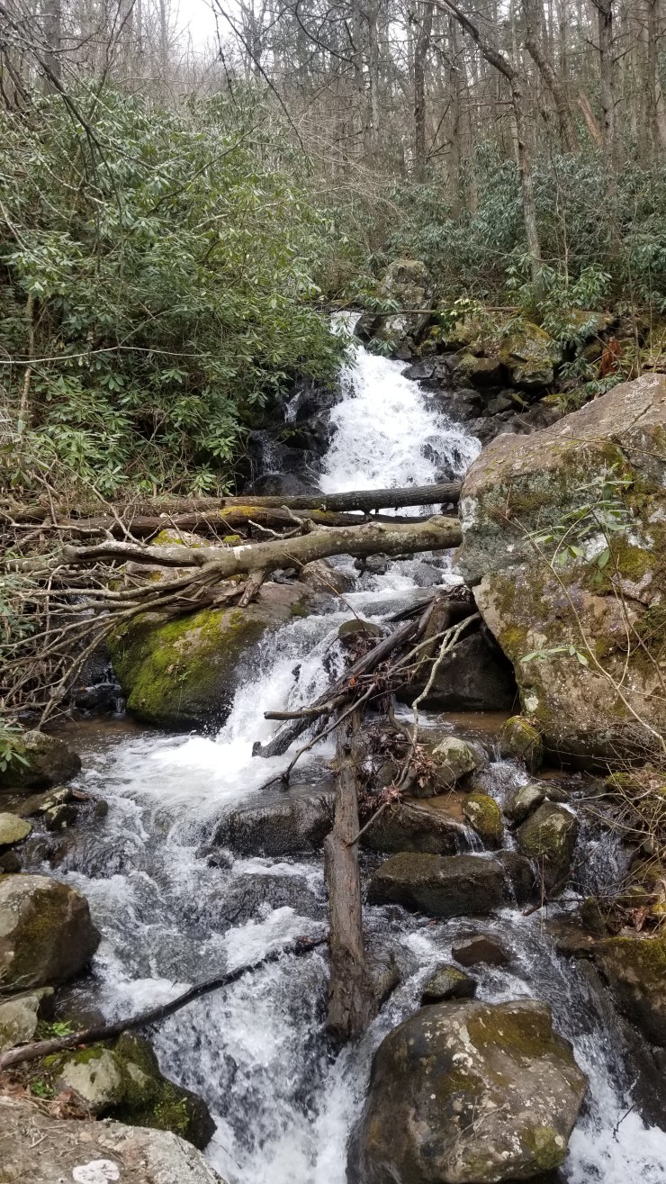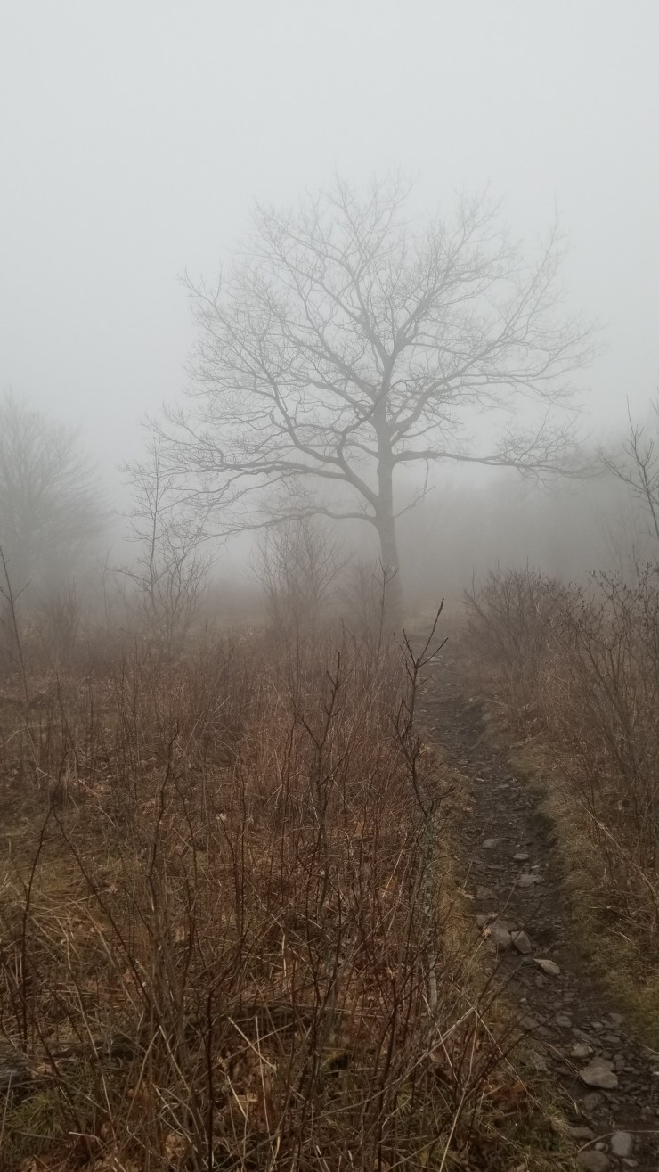 Got some water out of the creek and saw a few crayfish this morning. Thought about cooking them up, but did not. Left camp in the morning and started hiking up to Stone Mountain. The higher I went, the colder, the more foggy and way more windy it got. I was literally almost blown over more times than I care to remember. On a nice day the hike would be awesome. There were more ponies in the area too.