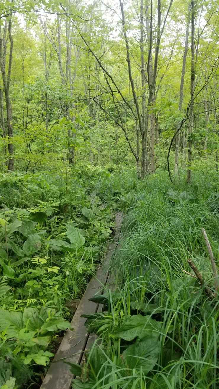 The trail was pretty enjoyable today. Had some flat spots, some rocky spots, some pretty steep ups and downs, some pastures and wetlands too over a lot of board walks.