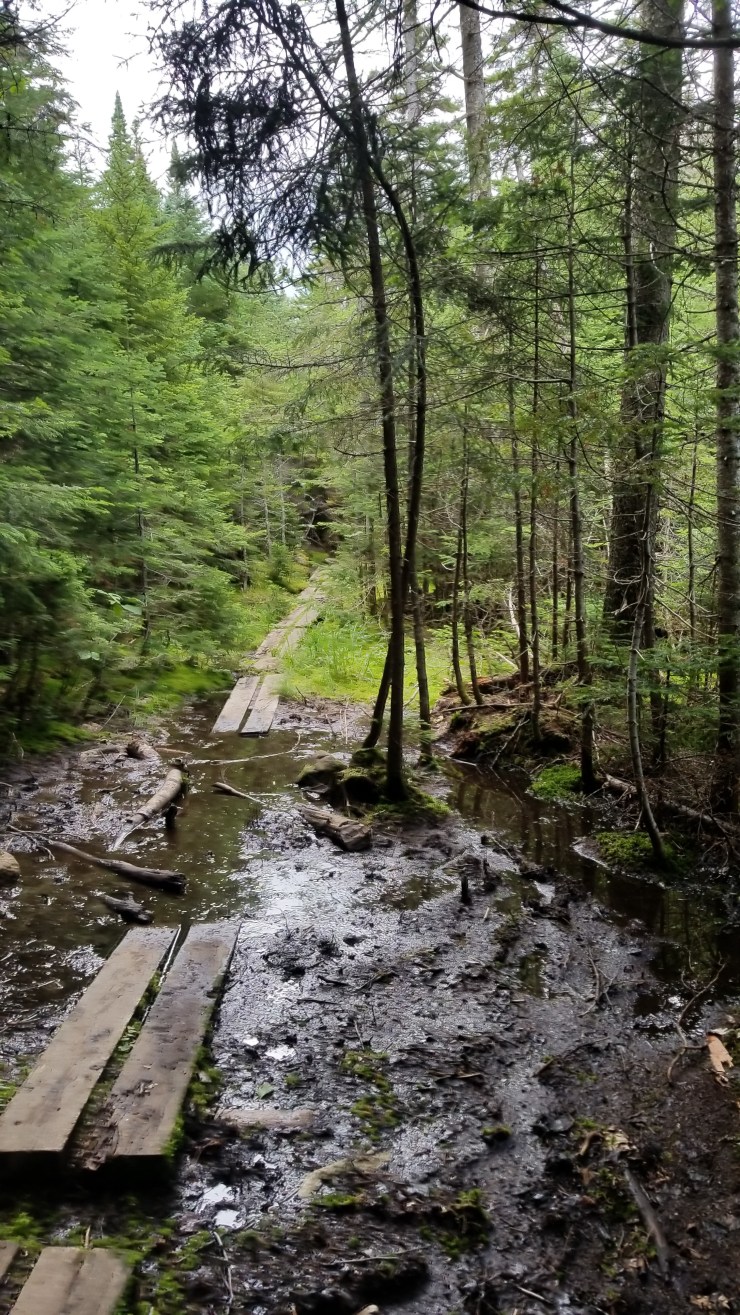 A fair amount of the trail traversed alpine bog. Sure there were boards to walk on, but most were rotted and would sink deeply into the deep mud. In some places I pushed my trekking poles into the mud and they never reached anything solid.